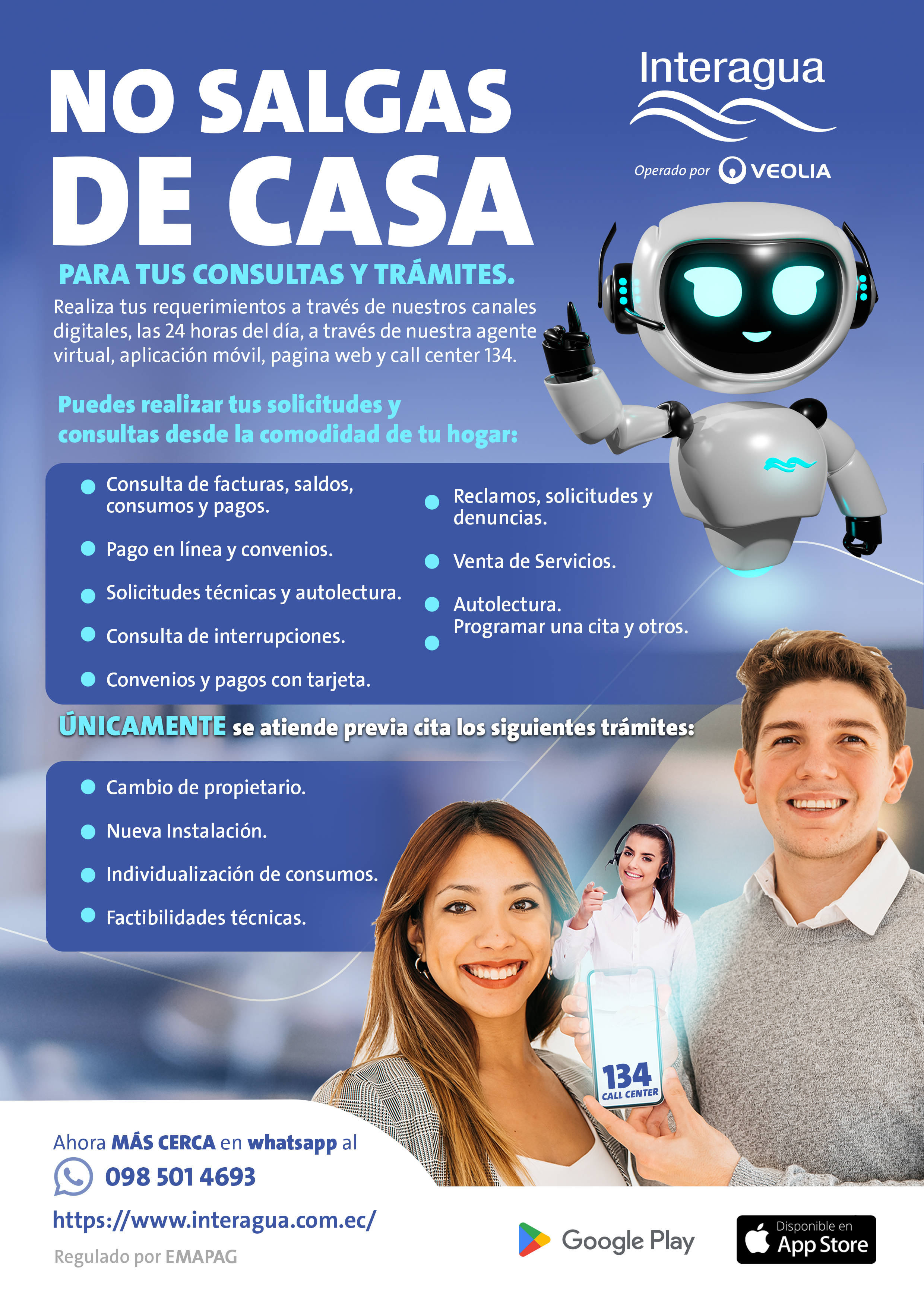 Adicionalmente Interagua le brinda las facilidades para que realice sus pagos en cualquier agencia de las siguientes instituciones autorizadas: