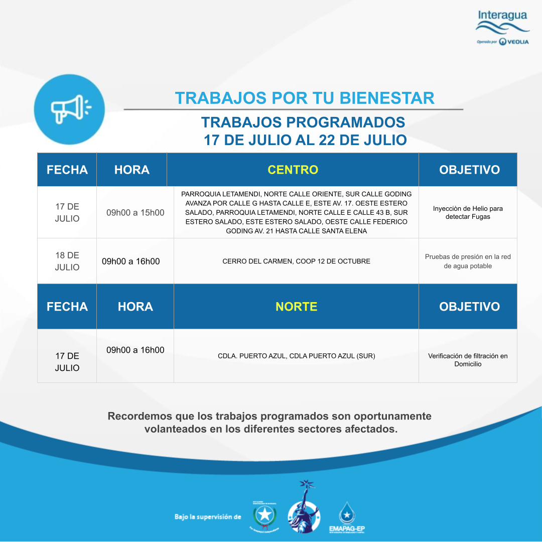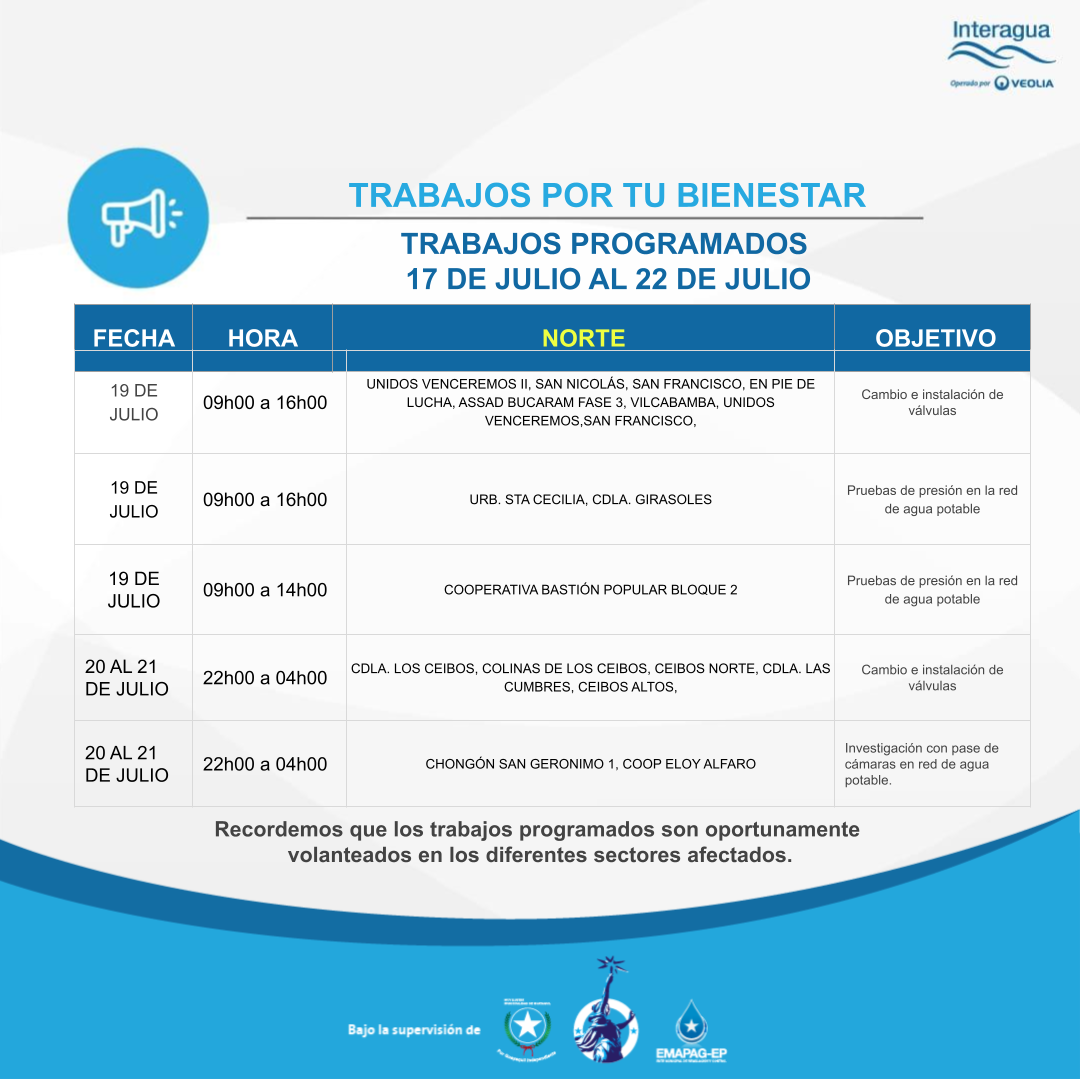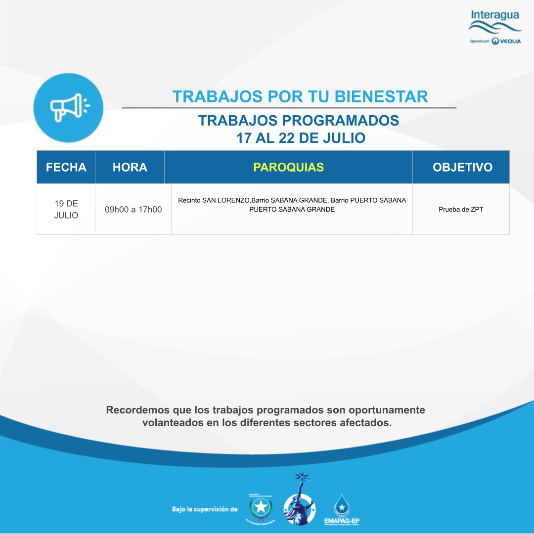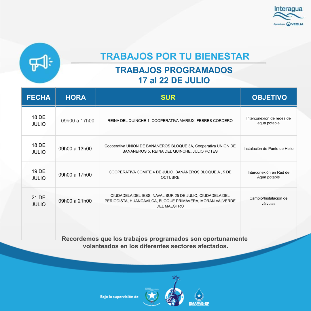 Interrupción Programada Semanal del 17 al 22 de Julio - 14/07/2023