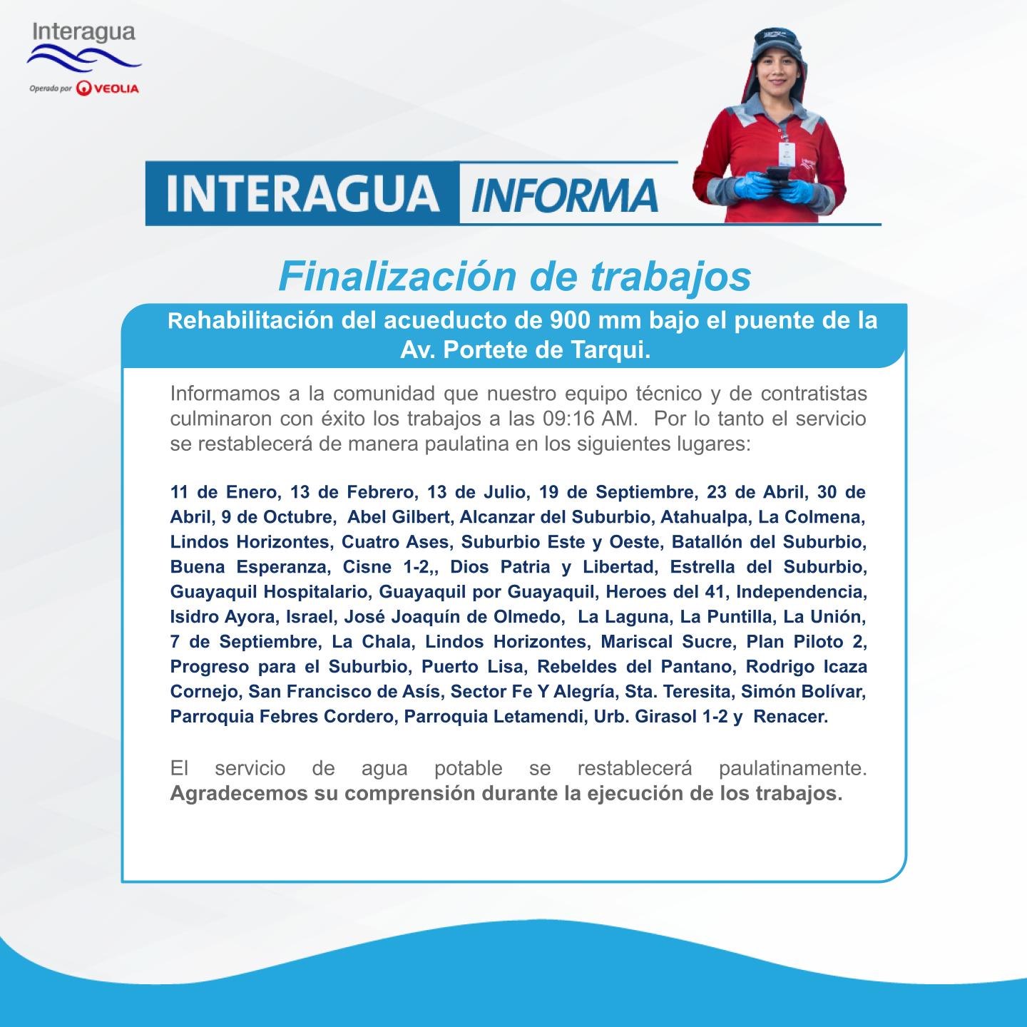 Nos complace informar que los trabajos de rehabilitación han concluido exitosamente a las 09:16 AM, antes del tiempo previsto.