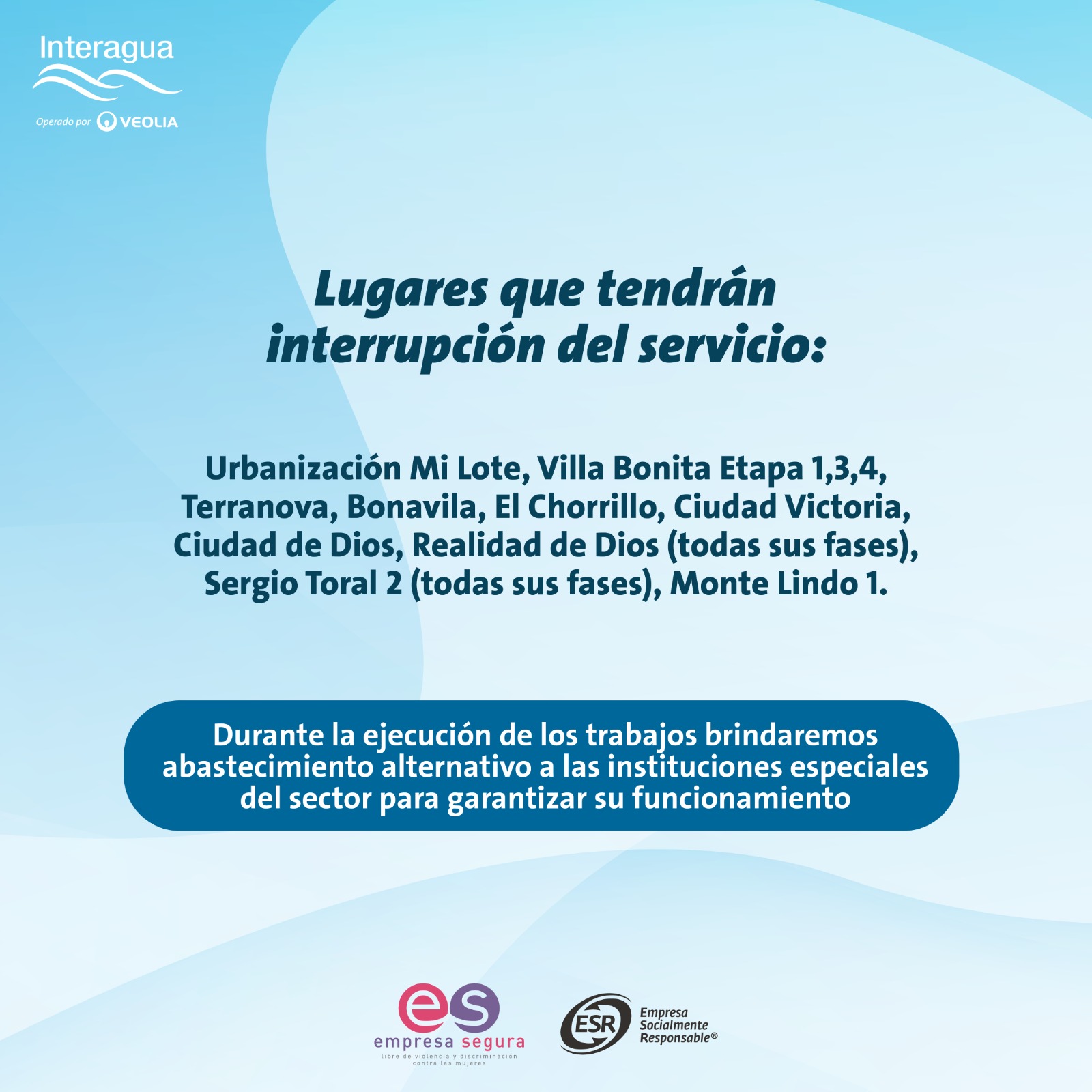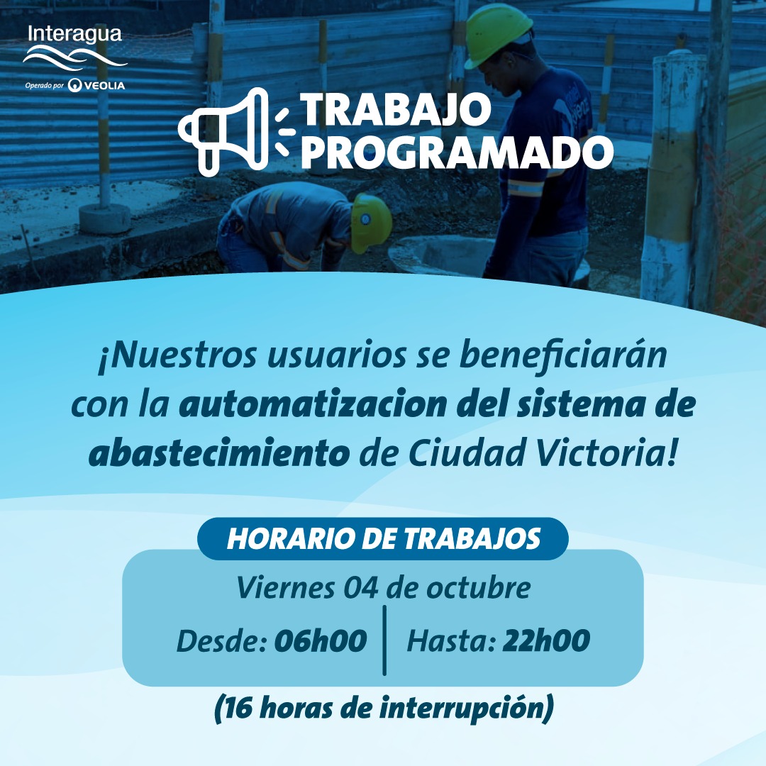 Seguimos trabajando para brindar un servicio de calidad a distintos lugares de la ciudad. Realizaremos importantes trabajos de Ciudad Victoria.Image removed.Image removed. Desde las 06h00 hasta las 22h00 del viernes 4 de octubre del 2024. Image removed. Conoce los lugares que no tendrán el servicio.