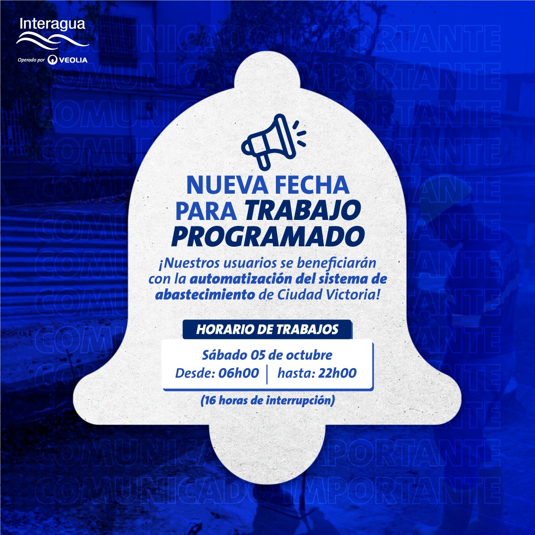 Trabajo programado: Nueva Fecha 5 de octubre Ciudad Victoria